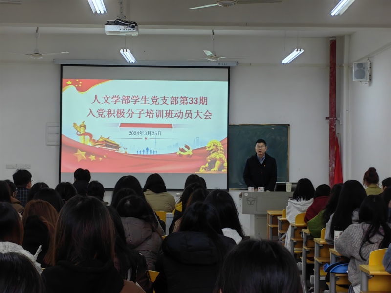 为进一步端正人文学部学生党支部入党积极分子的入党动机,保持基层党组织生机与活力,切实把握好党员队伍的“入口关”和“质量关”,在校党委、人文学部党总支的部署和指导下,人文学部于20243251220分在3号实验楼420教室召开第33期入党积极分子培训班动员大会。人文学部党总支部书记周景斌老师、学生第一党支部书记高悦老师、学生第二党支部书记郭旭林老师出席大会。