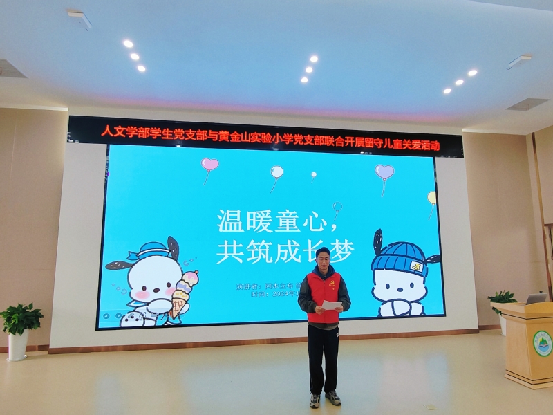 20241217日下午,人文学部学生党支部联合黄金山实验小学开展了主题为“温暖童心,共筑成长梦”的留守儿童关爱活动。本次活动旨在为留守儿童提供心理支持和关怀,帮助他们树立积极的心理状态,促进身心健康成长。