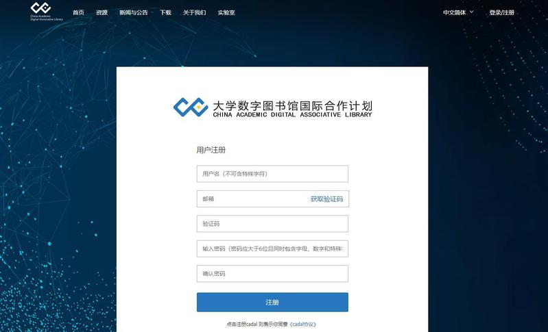 首次使用CADAL需先注册个人账号。访问地址:http://cadal.edu.cn/。点击页面右上角“注册/登录”按钮进行注册和登录操作。注册后支持微信扫码和账号密码登录。