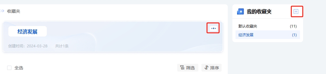 分类管理已收藏文献,可创建和编辑收藏夹。点击⊞新增收藏夹,点击