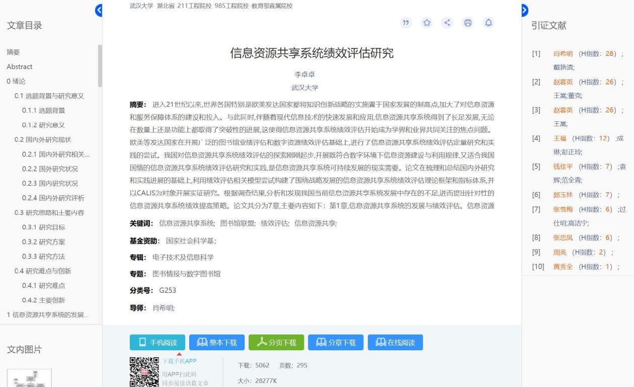详情页主要包括页头检索框、基本信息、附录信息、目录浏览。