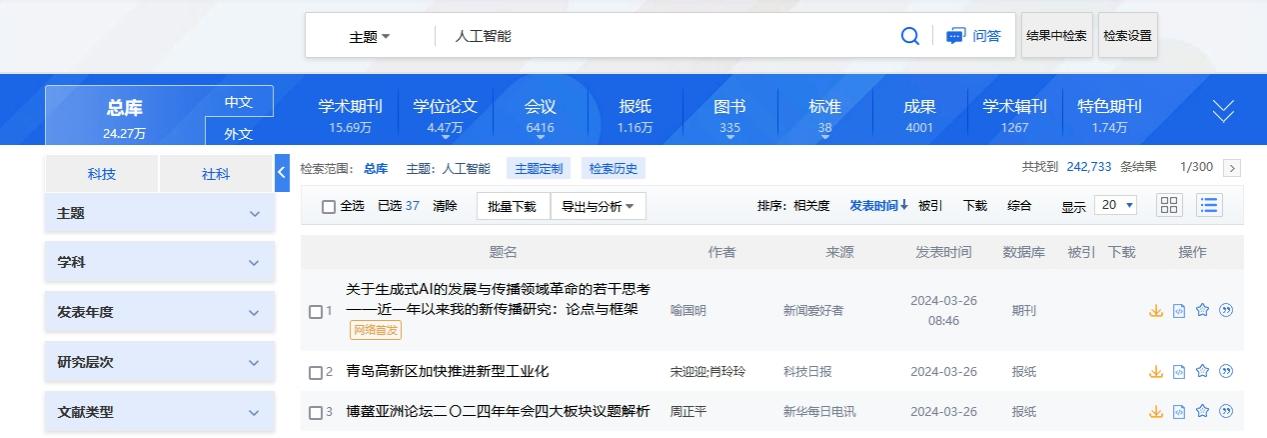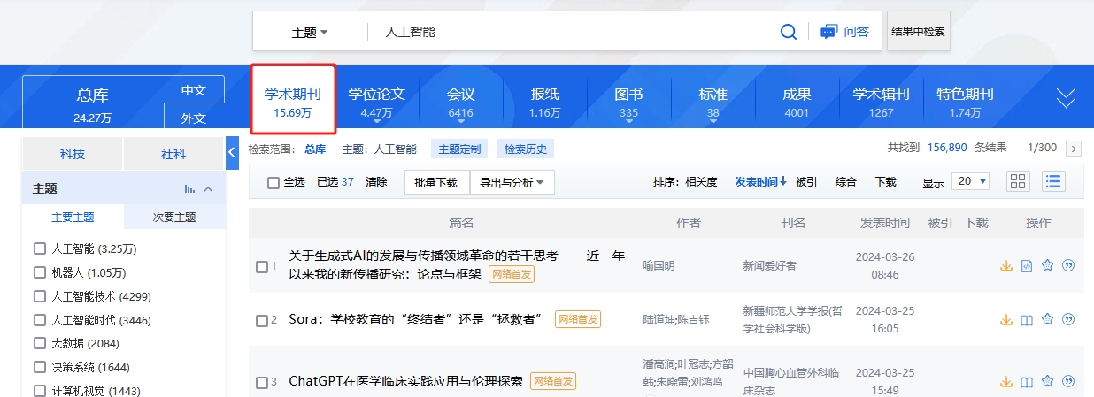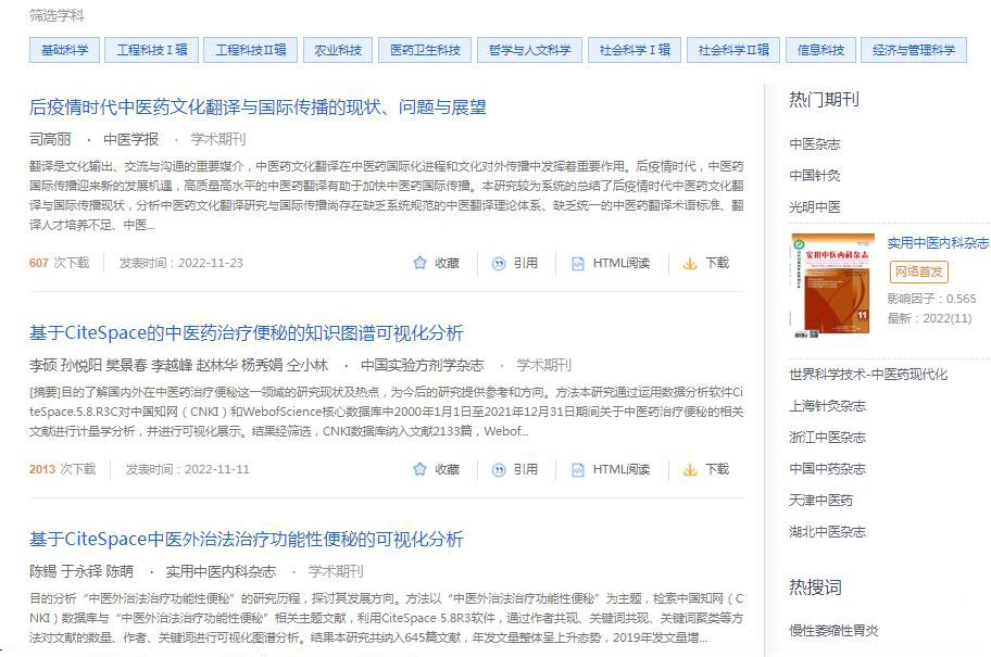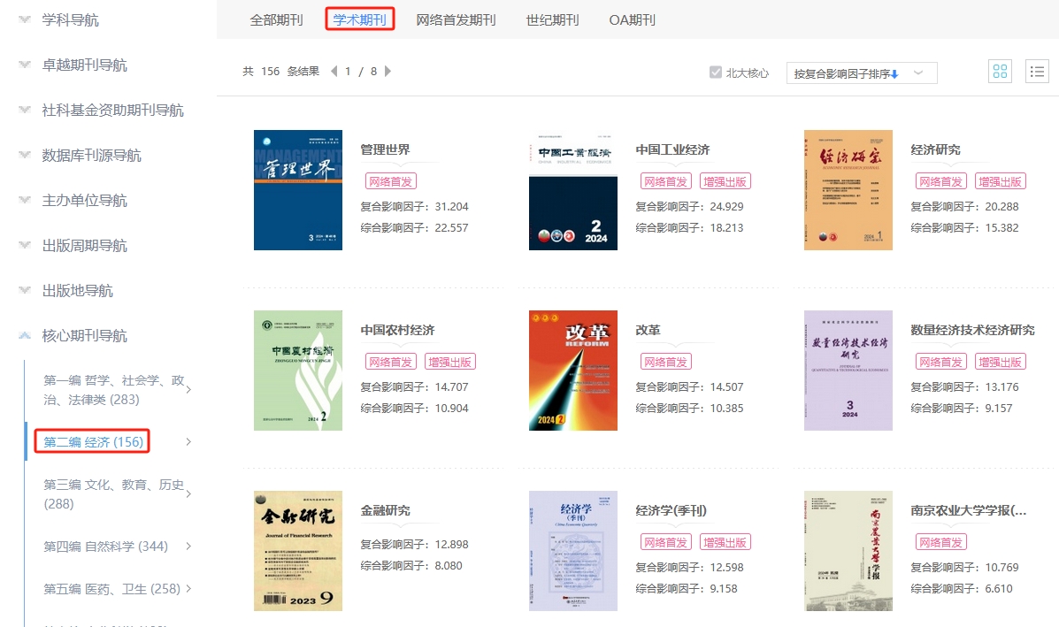 点击“学术期刊”,查看学术期刊文献: