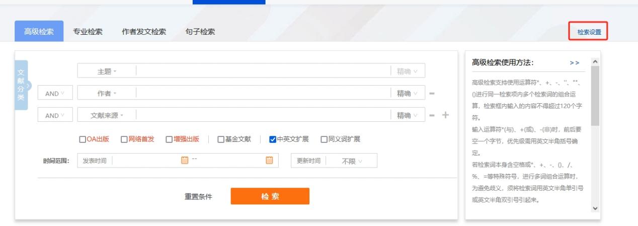 (2)在一框式检索或高级检索页面中的检索设置里删除或添加资源类型