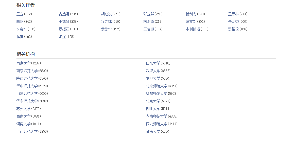大部分分组项的内容按文献量排序,部分分组项采用特有的排序标准,分组同时进行权威性推荐。