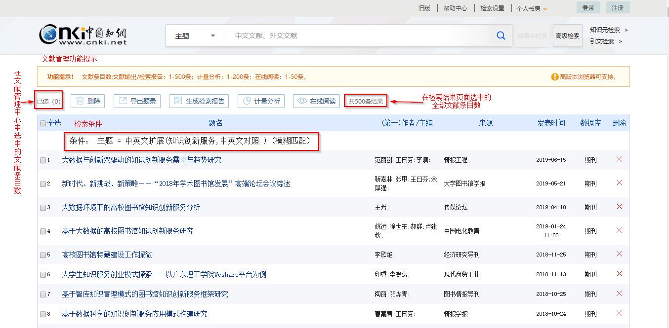 注册并登录个人账号,可进入我的CNKI享受个性化文献管理服务。包括: