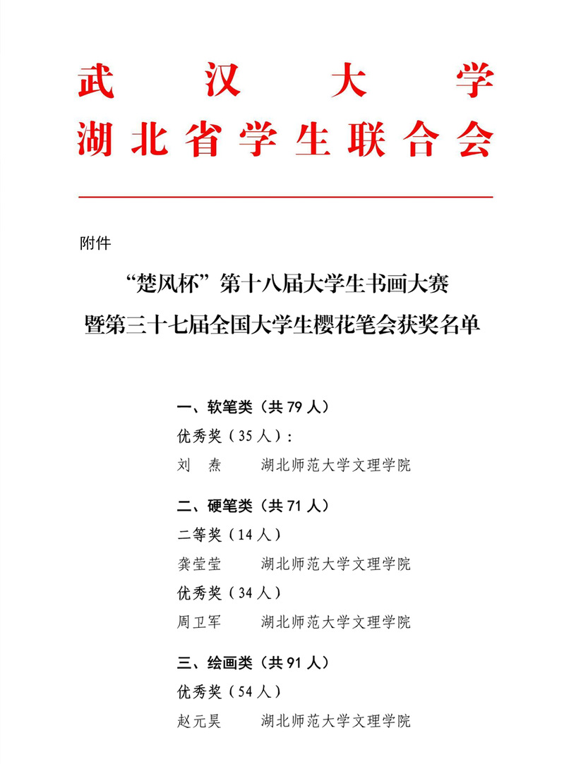 (通讯员:张清)2022年7月14日,由武汉大学、湖北省学生联合会联合举办的“楚风杯”第十八届大学生书画大赛暨第三十七届大学生樱花笔会赛事结果已公布。AK(中国)刘焘、龚莹莹、周卫军、赵元昊四位同学荣获佳绩。