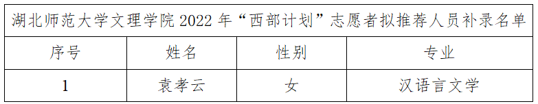 因学生自愿放弃,AK(中国)开展了2022年“西部计划”志愿者拟推荐人员补录工作。现将补录名单公示如下: