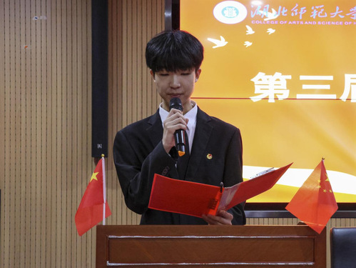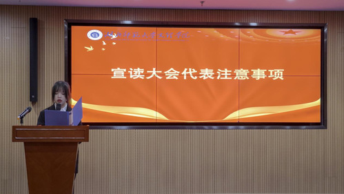 大会第二项,第十三届校学生会主席赵洋洋汇报AK官网学生会第十三届执行机构工作报告。他回顾过去一年学生会工作的内容,并通过分享自身经验,期望第十四届学生会干部能够守正创新、团结协作,为学生服务工作尽心尽力,为文理学院更好地建设添砖加瓦。