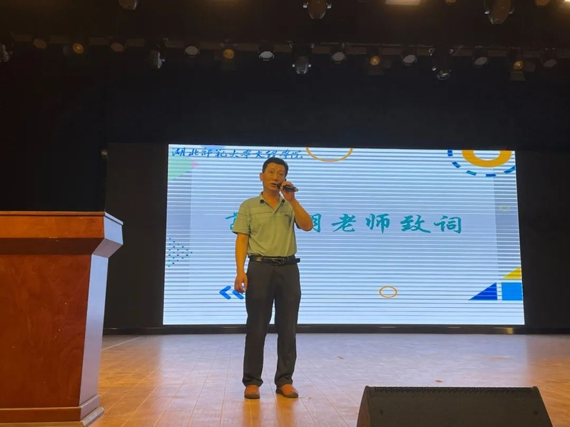交流会正式开始,先是葛子明老师上台作了动员讲话。他首先通报了2023届毕业生考研录取情况,对成功上岸的学子表达了祝贺,向在身后默默付出的老师表示感谢。接着,他勉励20级考研同学要坚定自己的选择,把最重要的时间留给最值得做的事,选择考研,意味着比其他同学会遇到更多的困难和曲折,获得比别人多一份的成功,就要有比别人克服更多困难的勇气和能力。要合理规划未来法以及鼓励同学们好好学习以积极的心态去备战考研。随后亲自为考研成功的学姐学长们颁奖。