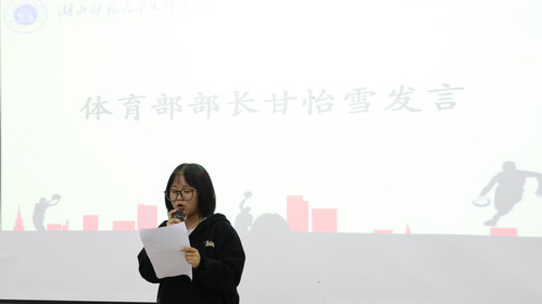开幕式伊始,由校学生会体育部负责人甘怡雪对本届篮球杯作开幕致辞。她代表校学生会体育部对各位老师和同学的支持表示衷心的感谢。她强调要大力发扬体育精神,赛出成绩,赛出格调,赛出水平,赛出友谊,取得比赛成绩与精神文明的双丰收。