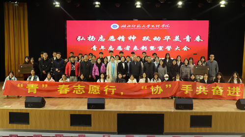 最后,青年志愿标兵上台带领全体志愿者进行宣誓,各领导老师、志愿者合影留念。