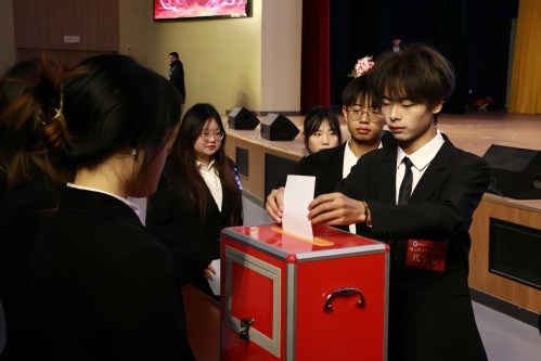 本次会议通过民主投票的方式从5名候选人中选举了第十六届学生会主席团成员。选举通过蔡雨思为AK官网学生会执行主席,李达园、但星星为主席。