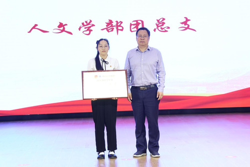 校团委书记陈荟芸宣读《2024—2025学年度五四表彰决议》,授予人文学部团总支“红旗团总支”荣誉称号;授予历史学2201班团支部等8个团支部“红旗团支部”荣誉称号;授予张雯雯等232名同学“优秀共青团干部”荣誉称号;授予王兰等385名同学“优秀共青团员”荣誉称号。现场领导为优秀集体与个人颁奖。