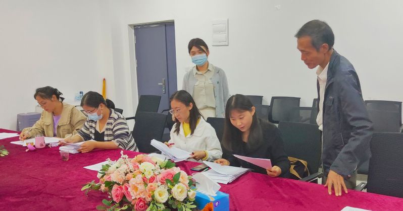 在所有征文作品上交收齐整理之后,由各位评委对各位参赛同学的征文作品进行评分,筛选出符合征文活动要求规定的优秀征文作品并给予分数评定。在评分评选现场,熊子延主任与汪玉宝书记对此次工作进行指导,并明确指出“反诈宣传征文要迎合二十大召开的时代背景,内容也要新颖创新而不能死套模板,充分展现学生们的精神活力和思维能力。”