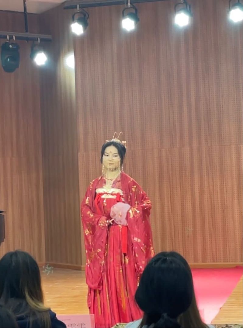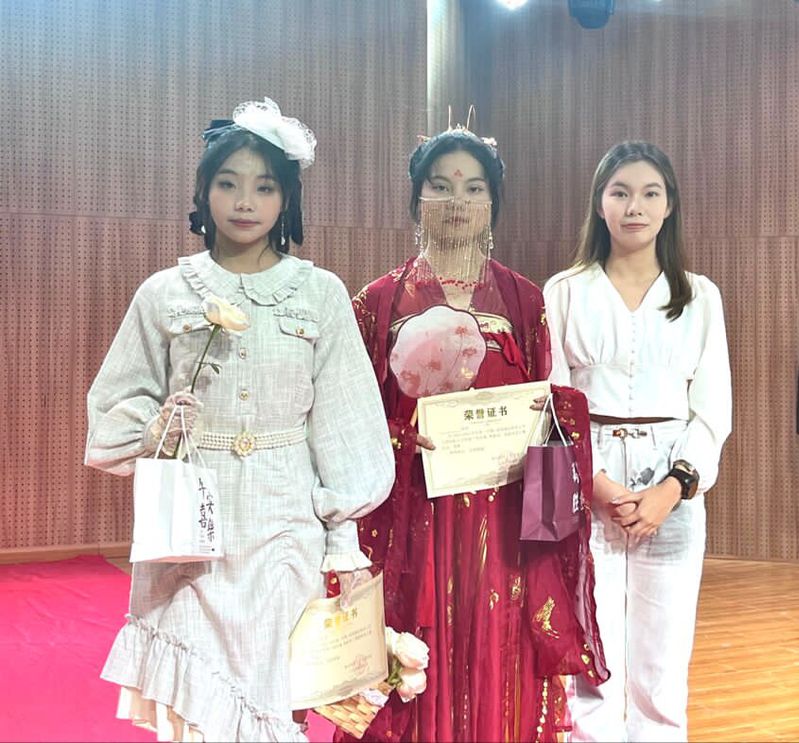 比赛伊始,主持人详细介绍了此次活动的评分标准并宣布比赛正式开始。伴随着在场观众热烈的掌声,一号选手武如钰同学身着红色汉服,手执圆扇,步摇微晃,尽展端庄大气的国风美,令台下的观众不禁连连赞叹。紧接着,四号选手李雨夏同学身穿一袭碧绿的旗袍映入眼帘,似早夏娇嫩的荷叶,清新灵动。在部分选手展示完后,来到了比赛的中场休息时间,由舞蹈队带来的节目令台下的观众沉浸其中。在所有选手展示完毕后,文艺部的曹颖同学带来了精彩的琵琶演奏,如听仙乐耳暂明。最后,在各位评委评分并得出获奖名单后,此次比赛正式结束。