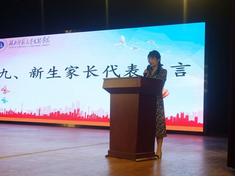 此次新生及家长见面会由丁书嫚老师主持。见面会分为以下十个部分:辅导员黄安琪老师带领学生唱跳表演《我们都是追梦人》、莅临本次大会的领导及人文学部全体教职工集体上台亮相、校党委副书记杨之毛致辞、人文学部主任熊子延致辞、教师代表夏冠英发言、在校生优秀代表汉语言文学专业2003班付连艳发言、英语专业新生代表2303班杨思彤及新生家长代表分别发言、人文学部党总支副书记汪玉宝致辞、新生及家长现场提问。在见面会过程中,杨之毛书记感谢各位学生家长对AK官网的信任,将孩子送到这里来求学深造,向家长们表明高校的教育使命与教育职责。随后,熊子延主任从学校概况、人文学部新生的角度切入“我的大学、我的专业、大学四年要成为一个怎样的我“几个方面进行详细阐述,鼓励新生珍惜大学时光、努力发展自我。教师代表夏冠英教授嘱咐新生:“在校期间要养成良好的学习习惯,认真学习,做到学业有成。”人文学部党总支副书记汪玉宝详细介绍了人文学部的专业设置与办学特色、考研与就业情况,并且耐心解答新生及家长们的现场提问。