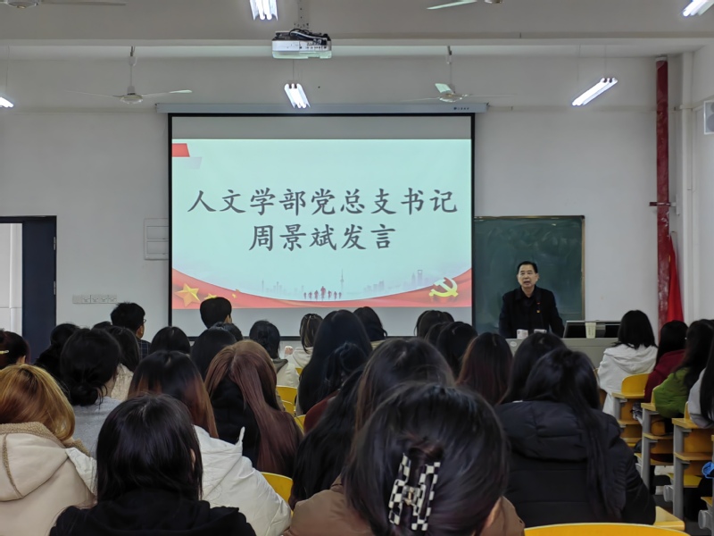 为进一步端正人文学部学生党支部入党积极分子的入党动机,保持基层党组织生机与活力,切实把握好党员队伍的“入口关”和“质量关”,在校党委、人文学部党总支的部署和指导下,人文学部于2024年3月25日12时20分在3号实验楼420教室召开第33期入党积极分子培训班动员大会。人文学部党总支部书记周景斌老师、学生第一党支部书记高悦老师、学生第二党支部书记郭旭林老师出席大会。