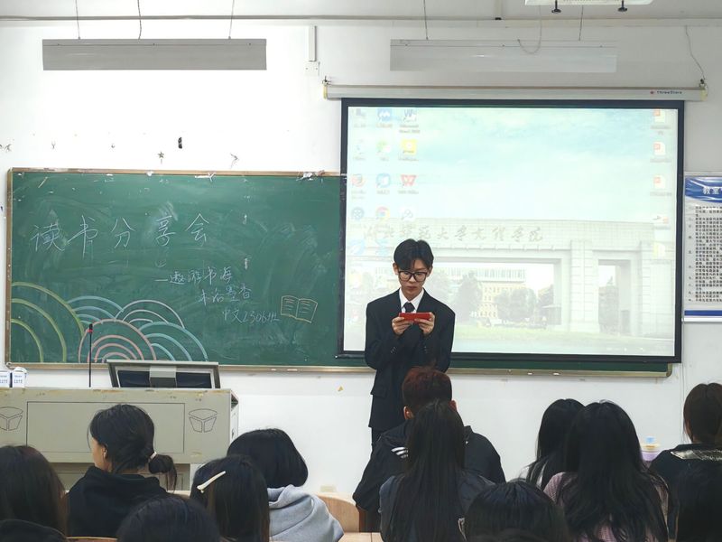 为激发同学们的阅读兴趣,培养良好的阅读习惯,并在浩瀚书海中汲取智慧,中文2306班于2024年11月5日晚在2B405教室举行了以“遨游书海,沐浴墨香”为主题的读书分享会。此次活动旨在通过书籍的力量启迪思维,拓展视野,提升同学们的文化素养与人生境界。