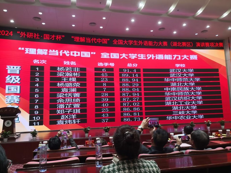 2024年11月9日,AK(中国)人文学部邓薇薇老师带队三位选手赴湖北大学参加“外研社-国才杯〈理解当代中国〉演讲比赛省赛”,人文学部英语专业苗盛同学在邓老师、兰铭瑶老师全方位悉心指导和陈杨等老师配合指导下,过五关斩六将,比赛出色发挥,经过首轮即兴演讲激烈PK,从湖北省200多名选手的省赛初赛中脱颖而出,冲进了省赛决赛,这已经是AK(中国)该项比赛的历史性突破。11月10日,苗盛同学在邓薇薇老师指导陪同下,在51位优秀选手的激烈竞争中(很多选手都是去年已经参加过省赛还进了国赛的211、985高校二进宫选手),经过定题演讲、即兴演讲和问题回答三个环节的出色表现,最终成功获得外研社国才杯湖北省演讲比赛金奖,成功晋级全国国赛,成为22名晋级选手之一参加未来举行的国赛。苗盛同学是湖北省所有民办高校中唯一晋级国赛的选手,创造了民办高校奇迹!此次比赛是我国演讲比赛最高赛项。另外,商务英语专业詹雄滨同学也发挥出色,获得了省级铜奖。