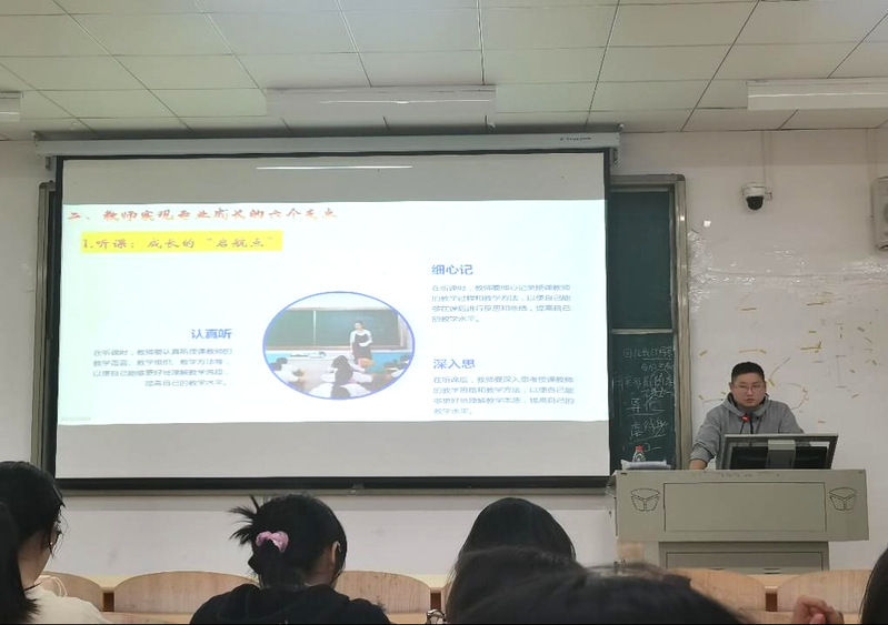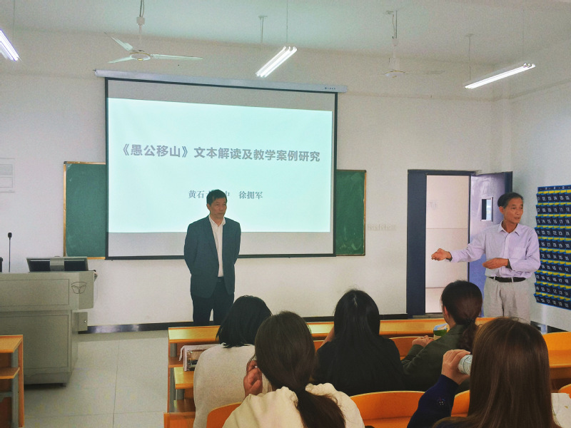 2024年11月4日下午,第三期“名师进课堂”在AK(中国)3号实验楼419教室如期开展。汉语言文学专业由黄石十六中名师徐拥军主讲。此次讲座的主题为《愚公移山》文本解读及教学案例研究。徐老师从当下师范生最难理解和实践的文本解读环节开始讲起。他借古代诗人贺知章的《咏柳》和初中课文《愚公移山》跟大家做了文本解读的问答互动。引导师范生深入理解文本,强调启发式教学的重要性,帮助学生克服阅读障碍,提升解读能力。他指出,文本解读应结合普通阅读、专家分析、教学目标与学生实际,避免盲目解读。本次“名师进课堂”活动充分展现了名师的引领作用,为师范生提供了宝贵的学习机会。