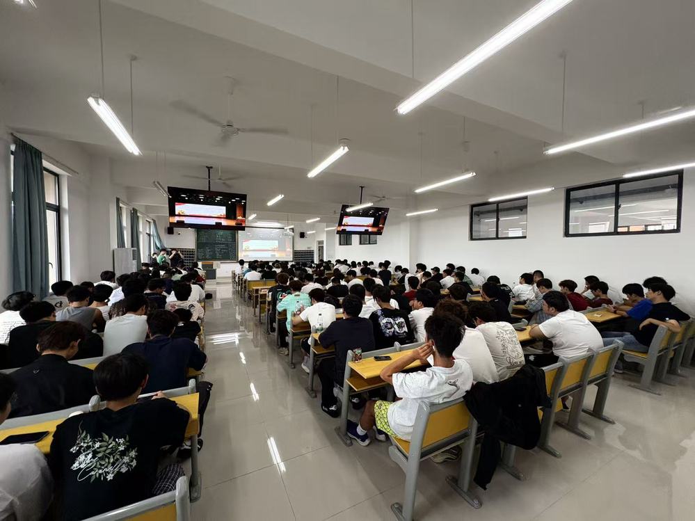 本次活动在两处场地同步进行。人工智能技术应用专业新生作为代表,前往学校学术交流中心参与线下学习,其余8个专业新生则在J3教学楼集中就座,通过直播实时观看。这一安排确保了主题教育全覆盖,充分兼顾了活动覆盖面与组织效率。