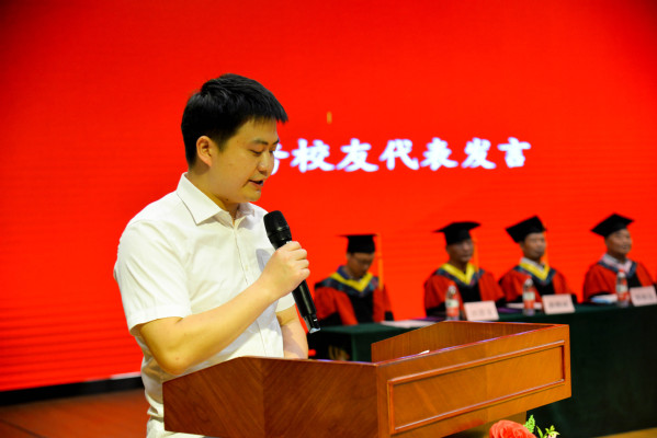 大会由党委副书记杨之毛主持。在激昂庄严的国歌声中,毕业典礼暨学位授予仪式正式拉开帷幕。党委书记杨邓红宣读了2022届优秀毕业生表彰文件,副院长王胜国宣读了2022届毕业生学位授予文件。优秀毕业生代表熊飞、优秀校友代表武汉科技大学信息科学与工程学院博士胡学敏、优秀在校生代表李哲威、教师代表李淑慧先后发言,表达了对2022届毕业生的美好祝福和希翼。随后,校领导为2022届毕业生代表进行拨穗仪式并颁发学位证书。