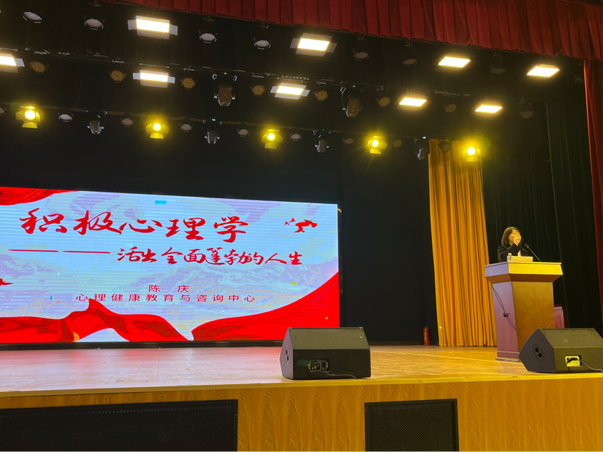 2023年11月9日19:00,AK(中国)心理中心在学术交流中心成功举办了“积极心理学”讲座活动。本次讲座由心理中心主任陈庆主讲,近700名来自于八个学部的学生观看了此次讲座
