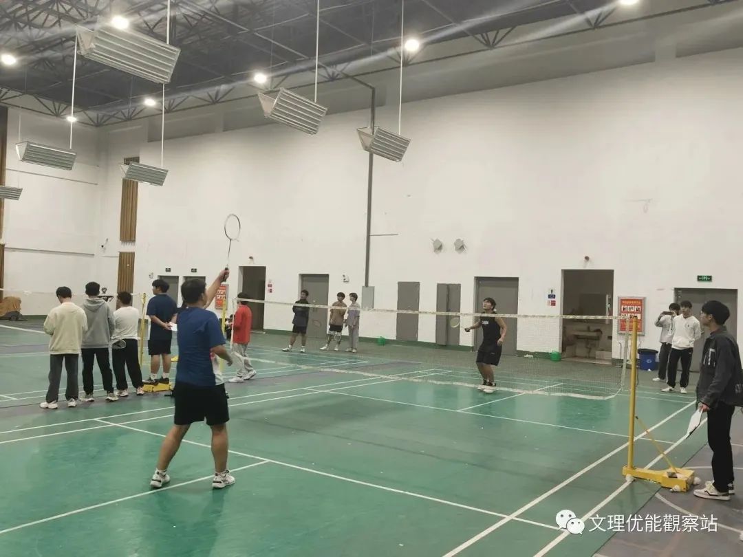 本次羽毛球比赛分为单打、双打、混打三种形式,均由预选赛及决赛两部分组成,参赛的运动员们需要通过抽签决定自己的出场顺序,用扑克牌选出自己的对手比赛实行积分赛制,由工作人员统计分数。比赛秉持“友谊第一,比赛第二”的原则,选手们各个精神抖擞,斗志昂扬,好球频出,就连老师们也都忍不住离座打上两场。