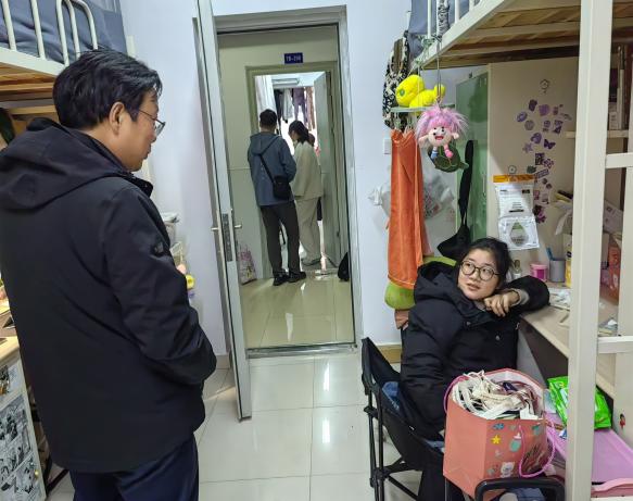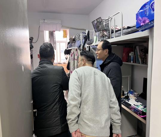宿舍送暖——为强化学生宿舍安全保障,学生返校后学工系统人员及全体辅导员深入学生宿舍,排查消防安全和传染病传播等安全隐患。重点排查是否存在擅自破坏限位器、私拉乱接电线、使用大功率电器、堆放纸箱饮料瓶等易燃物品等问题,并就发现的安全隐患进行督促整改。同时,倡导学生“断舍离”,对久置不用、季节性更替的物品通过转赠、二手售卖等方式及时处理,有效解决宿舍毛绒玩具、旧书旧本、鞋帽衣服等过多堆砌的问题。