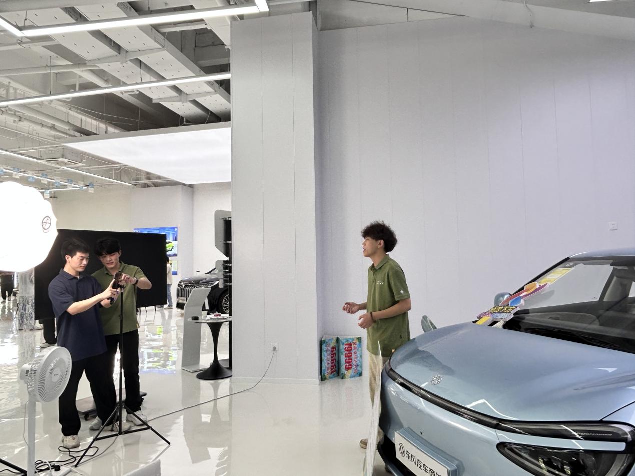 通过与学生的交流和现场观看,三电之家东风直播中心是一个十分成熟的汽车直播中心,直播中心不仅有完整的直播设备和直播团队,还有着齐全的直播汽车样品。学生在如此成熟的直播中心实习大大提高了学生的实习质量,就业也得到有力保障。