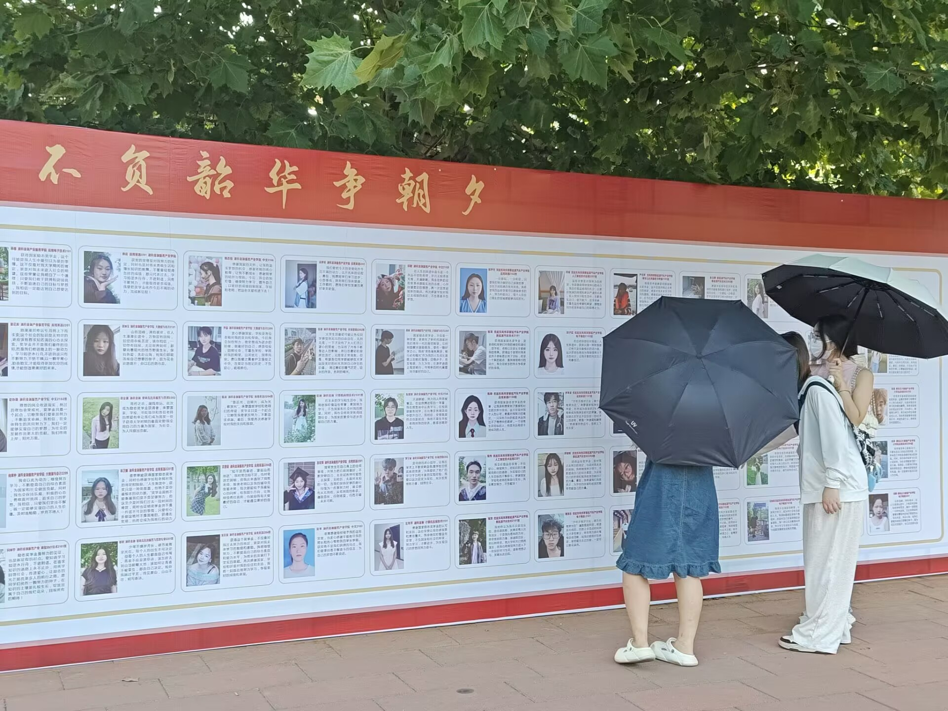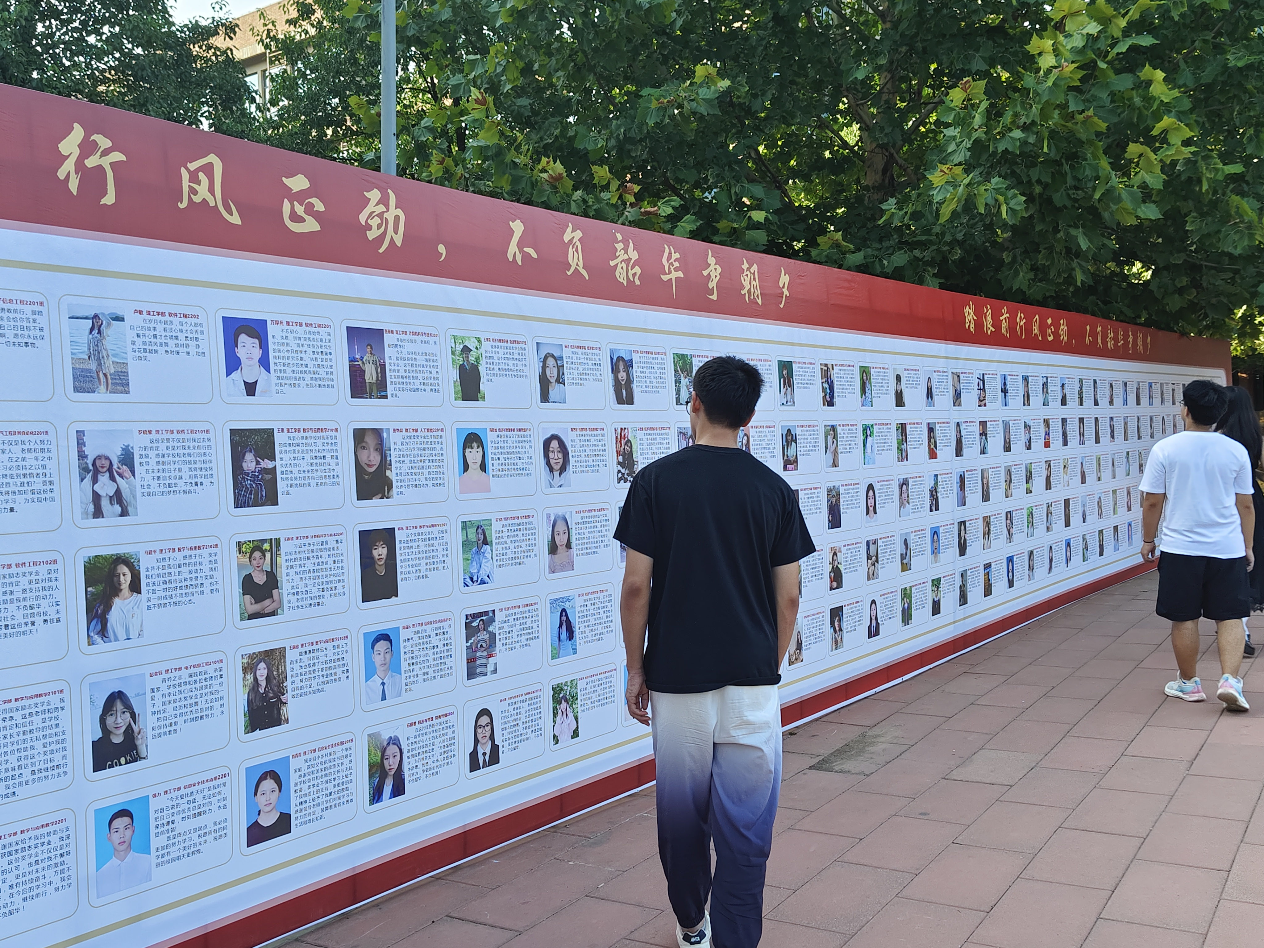 学生在参观优秀学生事迹宣传栏