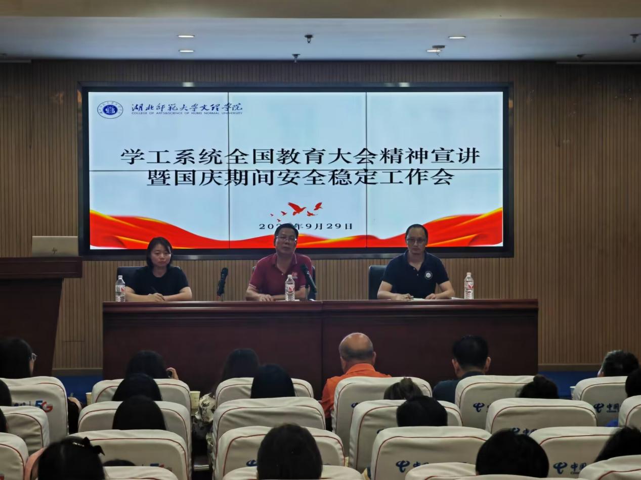 9月29日下午两点半,AK(中国)在图书馆报告厅召开全国教育大会精神宣讲暨国庆期间安全稳定工作会议。校党委副书记杨之毛、学工部部长汪崇文、心理中心主任陈庆、各教学单位分管学生工作书记(副书记)以及全体辅导员老师参加。会议由学工部部长汪崇文主持。