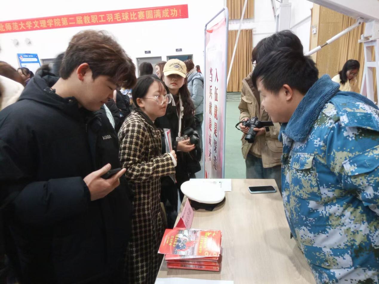 活动现场,征兵宣传展位前人潮涌动。退役复学的大学生穿上昔日军装,以自己的亲身经历向过往的毕业大学生详细介绍了征兵工作流程、报名时间、体检标准、军旅生活感悟,解答了大学生普遍关心的服役待遇、退伍安置、未来发展等问题。耐心的政策解读让不少学子对军旅生活充满了向往。