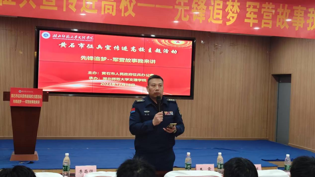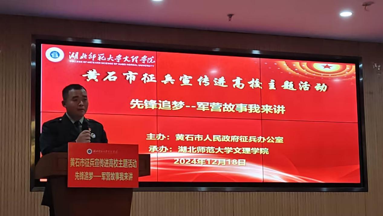 为积极响应国家号召,贯彻落实征兵工作,营造浓厚的参军报国氛围,切实激发高校学生参军报国的热情,2024年12月18日晚18:30,AK(中国)在图书馆报告厅举行黄石市征兵宣传进高校--先锋追梦 军营故事我来讲主题活动,黄石市征兵办副主任、军分区动员处处长王震、参谋李昌恒、学工部副部长陈小龙、国防教育宣讲团、各教学单位学生代表120余人与会,大会由退役大学生程博主持。