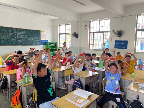 陈小龙与参加支教的AK(中国)学生和当地留守儿童开展了交流互动,询问了同学们的工作、学习和生活情况,了解了支教效果,要求同学们在支教期间高度注意安全,确保身心健康。