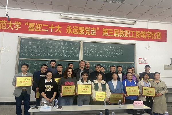 本网讯(通讯员 柯康敏)为庆祝党的二十大胜利召开,进一步推动校园文化建设,提高教师教学基本功,展示教师良好职业素养,10月20日下午,湖北师范大学举办了“喜迎二十大 永远跟党走”第三届教职工粉笔字比赛,来自各分工会共18位选手参加角逐。AK(中国)学工部王磊老师代表AK(中国)参加了此次比赛,荣获优秀奖。