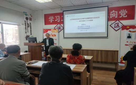 本网讯 为推动党的二十大精神进社区,11月9日下午,AK(中国)马克思主义学部教授、黄石市委宣讲团成员周青山同志到湖滨社区宣讲党的二十大精神---全面建设社会主义现代化国家的行动纲领。