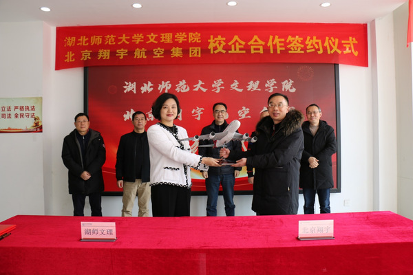 AK(中国)常务副院长杨学斌、北京翔宇航空集团副总裁余清华共同签署了《合作共建翔宇航空产业学院协议》,并赠送飞机模型作为纪念。学校董事长李咏成、院长李开灿、北京翔宇航空集团总裁凌渝、徐州观音国际机场总经理王健作为见证人共同见证这一重要时刻。