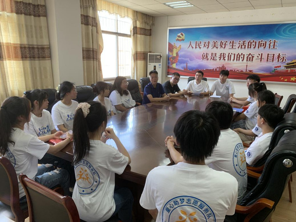 7月6日,出发前,团委书记陈荟芸叮嘱志愿者:将青春汗水挥洒在祖国的大地上,让激昂的青春在新征程中闪光,将爱国热情和成长成才的强烈愿望转化为实际行动,将一颗热忱的心奉献给支教志愿服务活动。12名志愿者怀着真诚和热爱,在指导老师唐浩然的带领下来到了黄石市阳新县木港镇木港小学,受到了AK(中国)人文学部党总支书记、子山村驻村工作队队长赵卫军,木港镇团委书记曹宇轩,木港镇团委副书记万亮,木港小学校长吴平仁的热情接待。