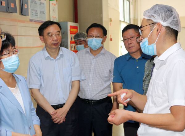 本网讯(通讯员涂亦乐)为进一步增强食品安全意识,筑牢食品安全防线,全面推进食品安全“两个责任”工作落实见效。5月30日上午,市委常委、市委宣传部部长周庆荣率市市场监管局、开发区·铁山区相关部门一行深入AK(中国)食堂开展食品安全检查工作。院长李开灿、常务副院长杨学斌、党委书记杨邓红、副院长张志华及相关部门负责人陪同检查。