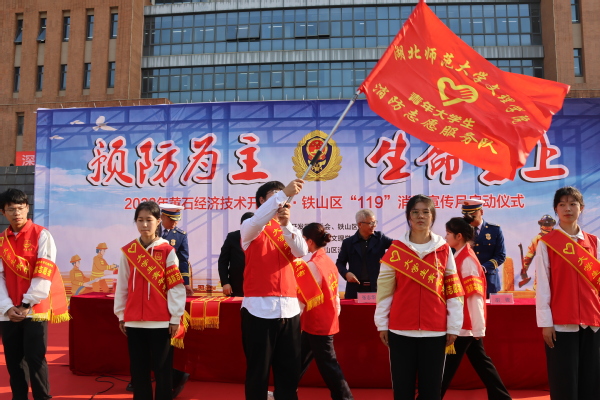 启动仪式上,举行了AK(中国)大学生消防志愿者成立暨授旗仪式,10名优秀大学生成为“青年大学生消防志愿者”,这是开发区·铁山区首批大学生消防志愿者。