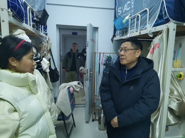 各检查组通过实走访、严问询,全面排查整治各类安全风险隐患。检查范围涵盖学生宿舍、食堂、教学楼、图书馆、实验室、超市、学术交流中心等安全重点区域。对涉及师生人身和财产安全方面的消防疏散通道、消防设施器材、应急照明、食品卫生及宿舍用电安全等进行了仔细检查,确保不留盲区、不留死角。在检查过程中也开展“三夜两节”的安全教育,叮嘱广大师生注意个人安全,在离校时要关好门窗,切断电源,确保人身财产安全和假期校园安全。