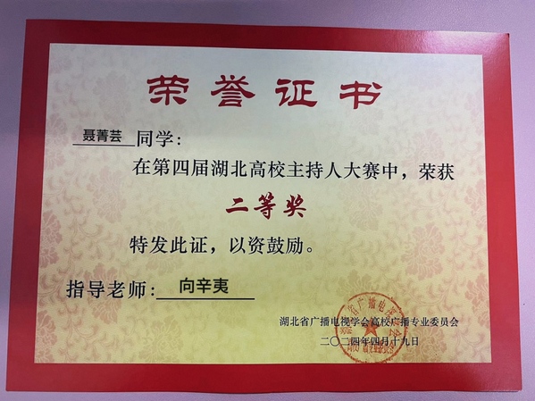 本网讯(通讯员 张慧萍)4月19日,第四届湖北省高校主持人大赛在湖北经济学院大学生活动中心举行。AK(中国)广播台播音员、人文学部中文2306班聂菁芸同学在比赛中荣获二等奖。