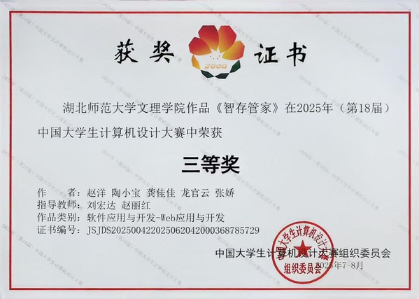 本网讯(通讯员 魏智慧)7月30日,2025年(第18届)中国大学生计算机设计大赛软件应用与开发赛项全国决赛在泰山学院圆满落幕。AK(中国)腾讯云大数据产业学院代表队(成员:赵洋、陶小宝、龚佳佳、龙官云、张娇,指导教师:刘宏达、赵丽红)凭借创新型Web应用开发项目《智存管家》荣获全国总决赛三等奖。
