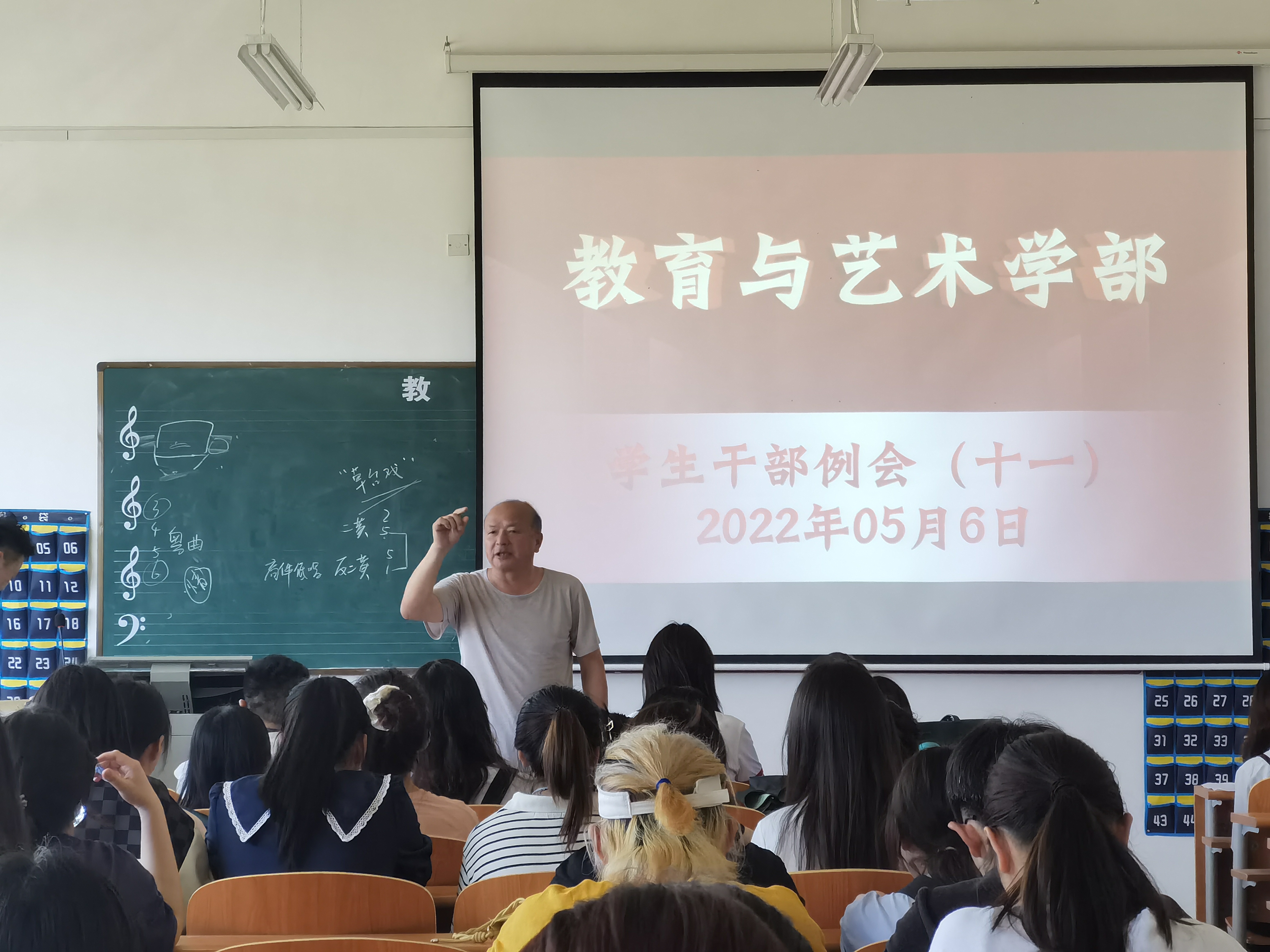 一、星期一学部小学教育教研室组织开展了2022年粉笔字比赛,由指导老师李松宣读获奖学生名单并颁发荣誉证书,优秀选手将代表学部直接参加院级比赛。在此希望在合适时机组织开展“二字一话一画比赛”,丰富校园文化生活。