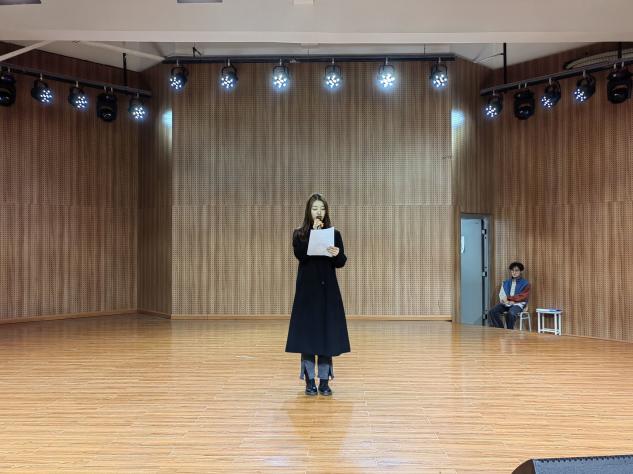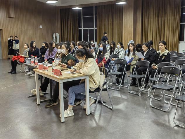 为了弘扬荆楚优秀传统文化,丰富校园生活,营造积极向上的校园文化氛围,教育与艺术学部于2022年11月19日晚6:30在活动中心三楼的音乐厅举行“荆楚优秀传统文化校园行”朗诵比赛初赛。辅导员尹誉霖、孙盼蕊及团学会主要干部担任评委。