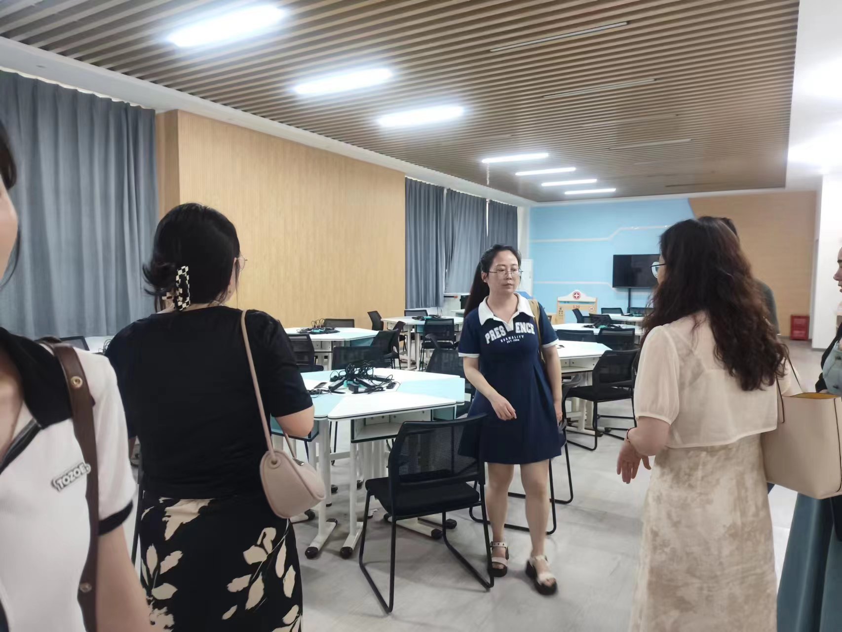 2023年6月29日,湖北仕腾教育集团管理有限公司执行董事、党委副书记乔卫云及教研园长一行来AK(中国)教育与艺术学部考察交流。文理学院教务部副部长胡敏、学部主任王文教授及学前教育专业负责人李璐等老师参加。双方就学前教育专业学生实习实训、毕业生就业、高校专业教师入园指导、幼儿教师能力提升等内容进行交流。会后,集团公司领导在专业教师的带领下参观了学前教育专业的6个专项实训室,对AK(中国)学前教育专业的培养理念、办学条件和教师团队给予了高度评价。
