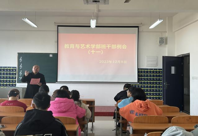 2023年12月8日中午12:00,在实验楼1-403组织召开学生干部工作例会。全体辅导员、团学会干部及各专业班级负责人与会。例会由总支书记李先华主持。