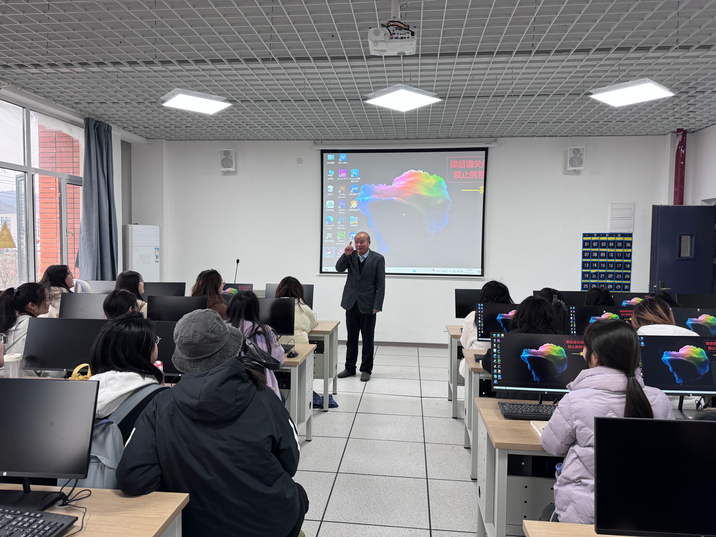 新学期为了进一步加强学风建设不断提高同学们专业技能,2024年3月13日16:00分,学部总支书记李先华带领全体辅导员赴实验楼1-301观摩小学教育2101班“课前十分钟”微演讲。陈立威同学的授课主题为《观潮》(小学四年级语文课本),授课重点突出,思维清晰,语言朴实流畅通俗易懂,给课堂带来了活跃的气氛。
