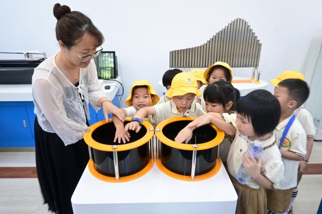 按“一班一活动,一师一幼儿,一室一指导”的原则,贴合实训室的特点,活动在早期阅读实训室、蒙台梭利实训室、保育实训室、手工实训室、智慧幼儿园实训室、奥尔夫实训室和物理演示实验室同时进行。大学生们精心策划了活动,包括科技展览、皮影戏、手工制作、音乐游戏、趣识动物、娱乐互动等。这些活动不仅推动孩子们的能力发展,还增进了师生的互动与交流。孩子们在活动中展现出高昂的热情和积极性,他们与老师一起完成任务,在快乐中接受知识,在观察中学会思考。“外展内延·融合共创”活动,旨在促进学前教育协同发展,共建高质量教育体系。活动不仅有利于促进课程改革、专业发展和学生自身的发展,也通过和地方幼儿园的共建,为幼儿教育注入了鲜活的力量。